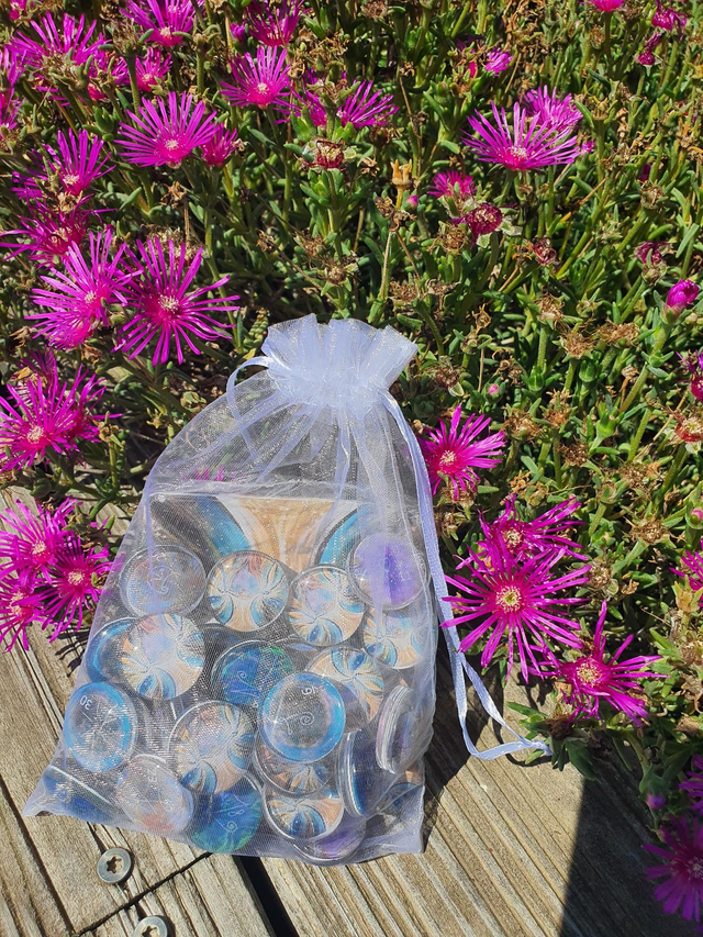Ces runes, que vous pouvez amener partout avec vous car discrètes, font un diamètre de 25mm chacune.